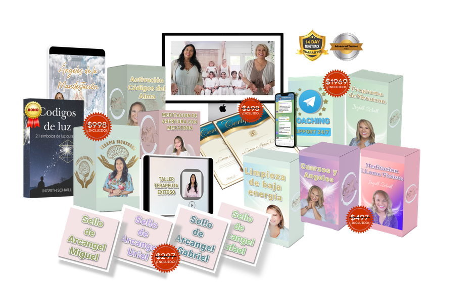 Además, esta maestría incluye, 1 herramienta imprimible de comunicación y canalización del arcángel Miguel, también recibirás la increíble terapia Bioneuser de descodificación para liberar tu mejor potencial y llevar tu maestría al máximo nivel. y mas de 16 BONOS Todo incluido gratuitamente en esta maestría.